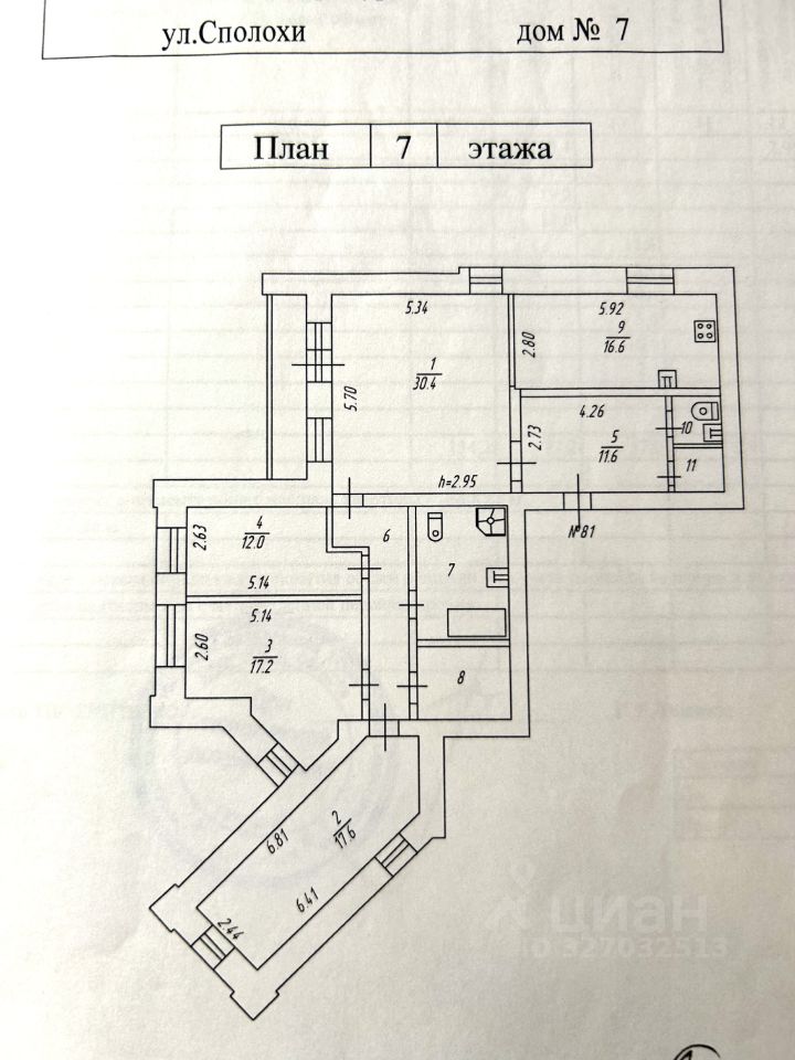 Планировка включает в себя четыре комнаты и просторную кухню, что будет удобно для большой семьи. Высота потолков составляет 2.95 метра, создавая ощущение простора. В квартире есть один совмещенный и один отдельный санузел, что очень удобно для повседневной жизни. Также имеется лоджия, где можно обустроить уютное место для отдыха.