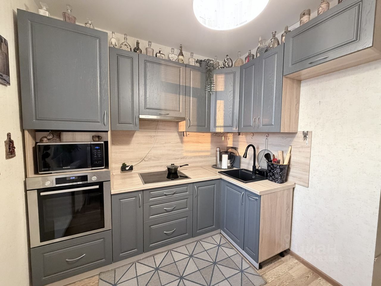 • Кухня встроенная. Оставим плиту варочную панель, вытяжку, духовой шкаф.