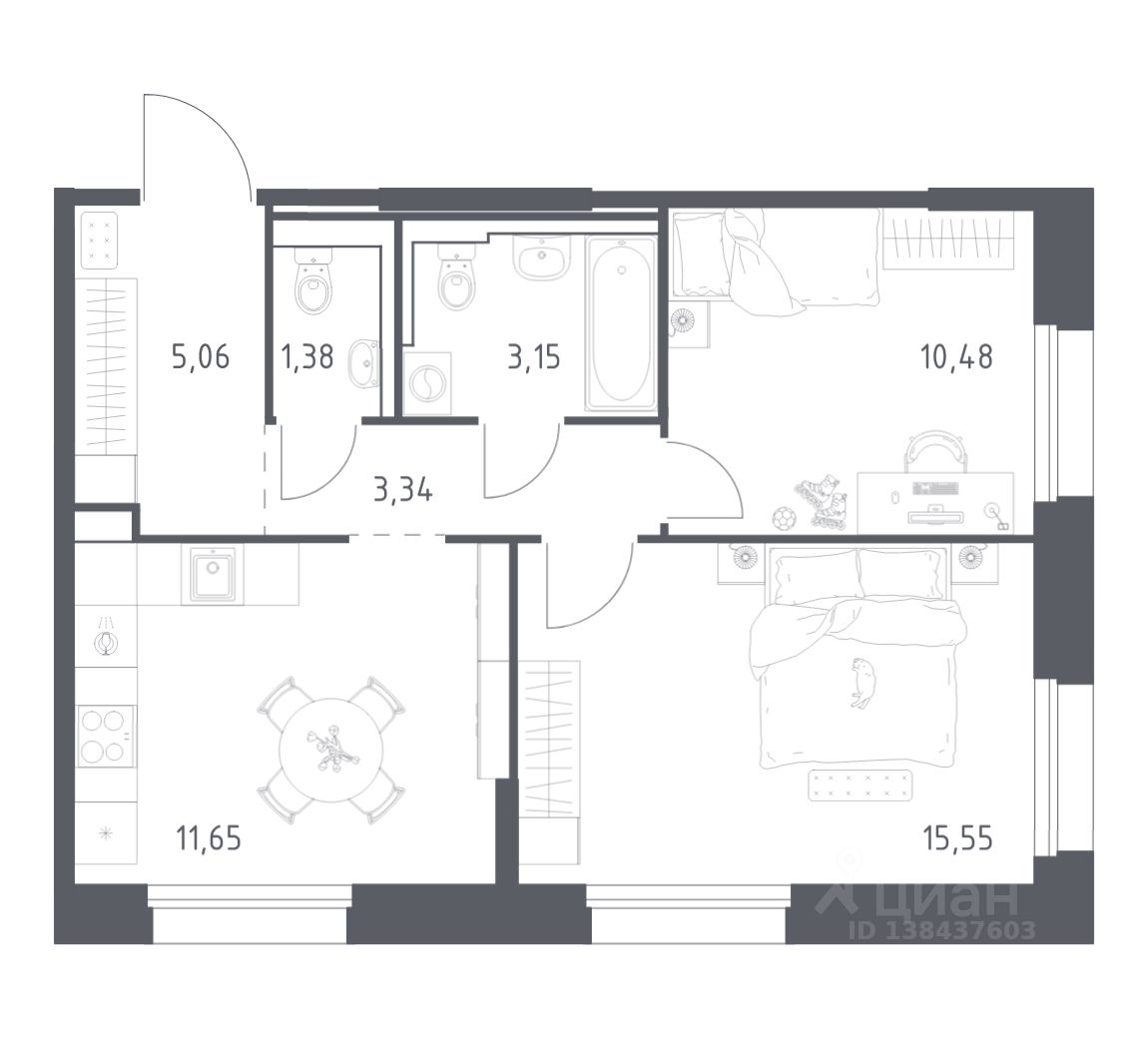 Продуманные планировки от небольших студий до просторных 4-комнатных квартир. Отделка на выбор: готовая, White Box или вариант без нее. Выбирайте варианты без отделки, если хотите реализовать собственные решения.
