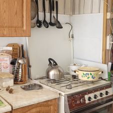 Газовая плита подключена к баллонам (В наличии 3 заправляемых баллона на 50л).