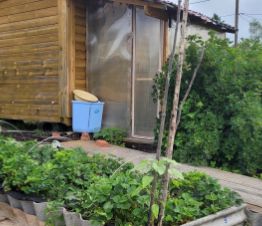 В 2024 году установлены две теплицы из поликарбоната. По всей территории участка проведены пластиковые трубы для полива.