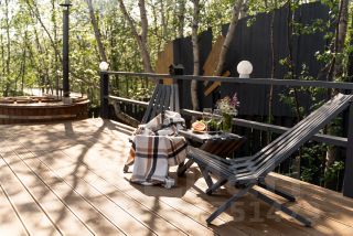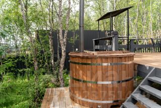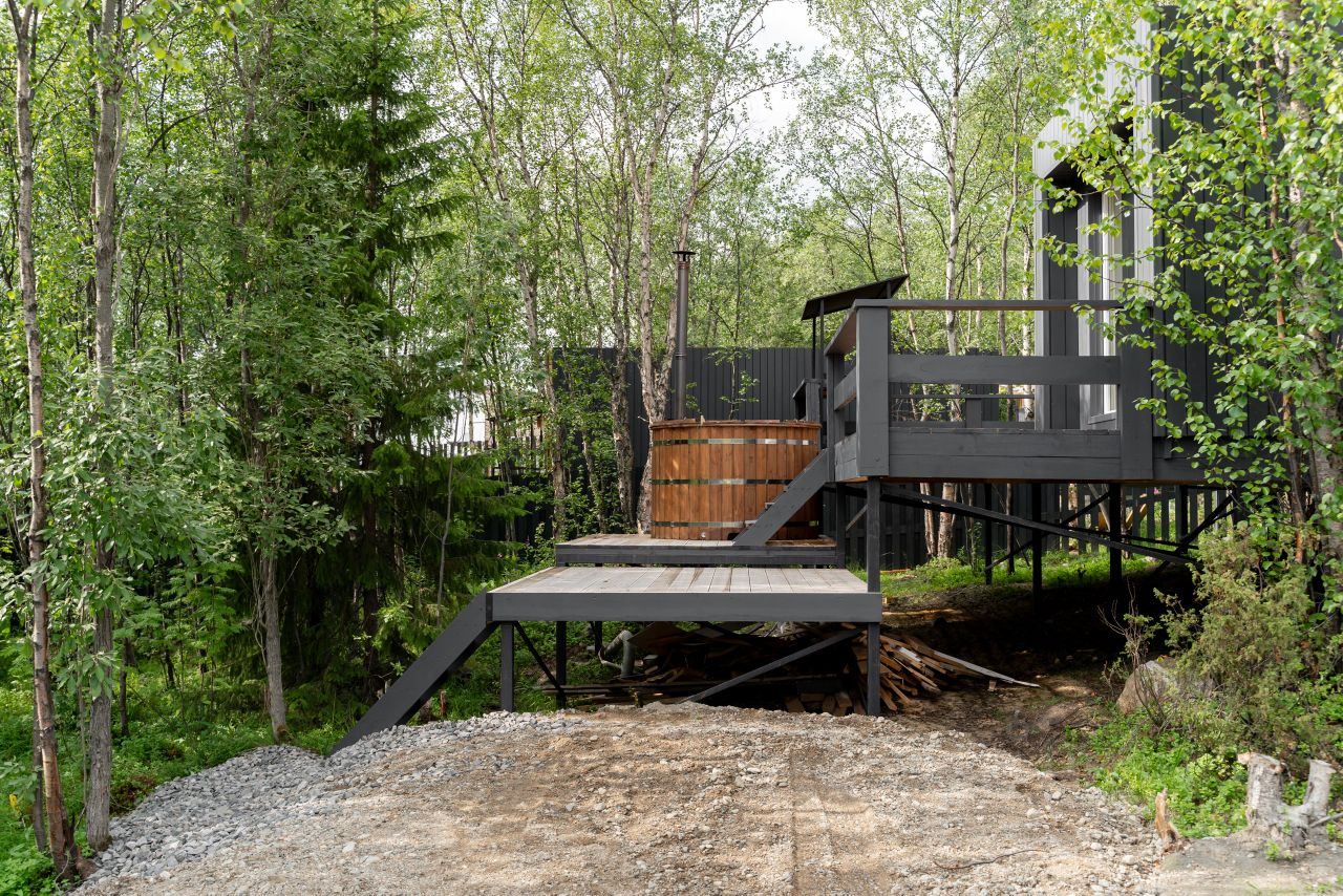 Все дома имеют современный стильный дизайн, панорамные окна, полностью оборудованы мебелью, техникой, всем необходимым для проживания, террасой, мангальной зоной и купелью. В некоторых домах оборудована сауна. Территория огорожена забором. Установлено видеонаблюдение.