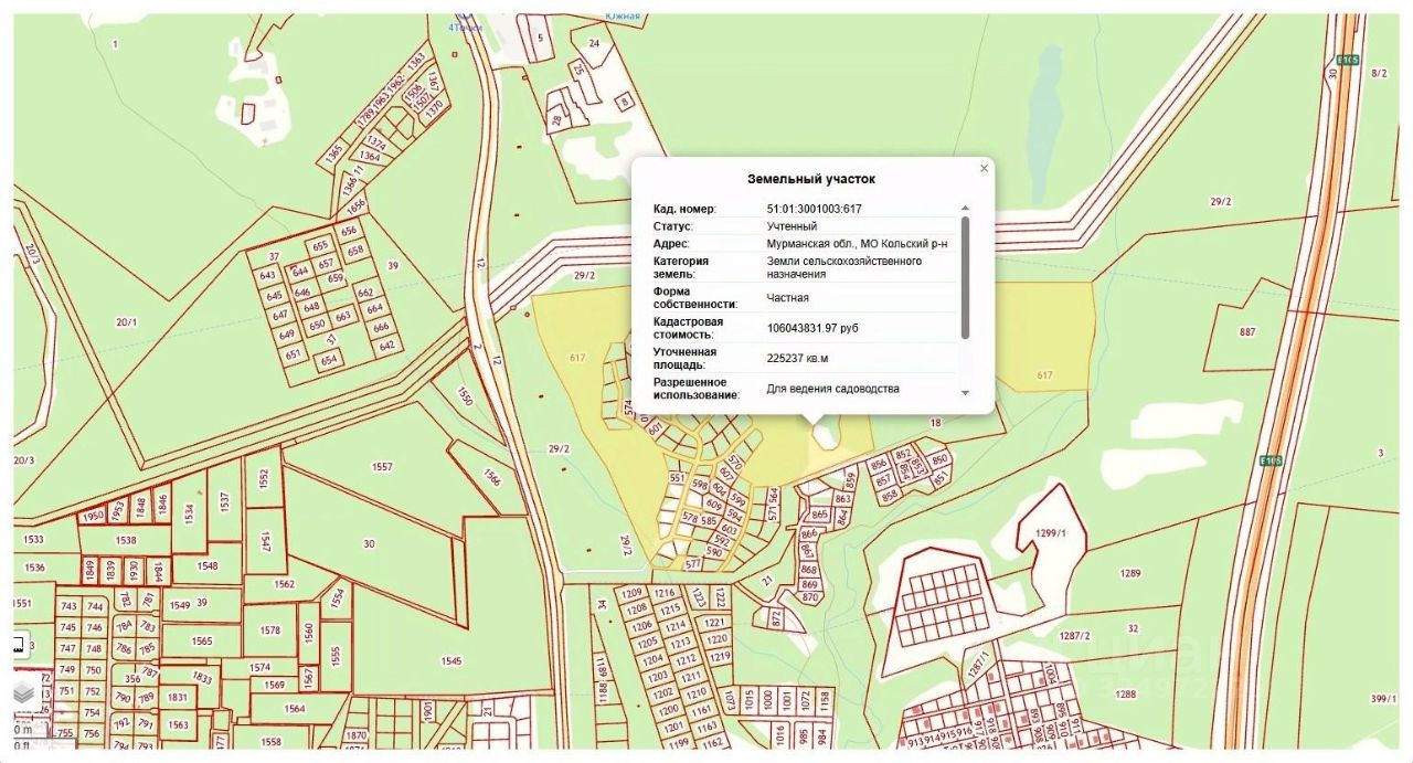 Адрес: Мурманская обл., Кольский р-н, кадастровый номер:51:01:3001003:617.