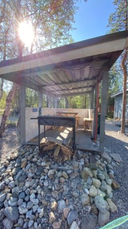 Благоустроенная зона отдыха с беседкой и мангалом.