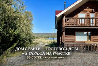 Дом с баней + гостевой дом + гаражи на участке 33 сотки с видом на озеро.