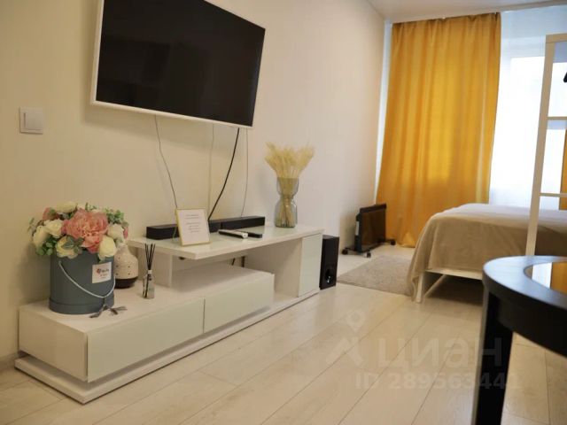 Стильная кухня-гостиная со всей необходимой техникой и раскладным диваном,