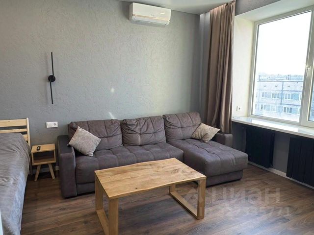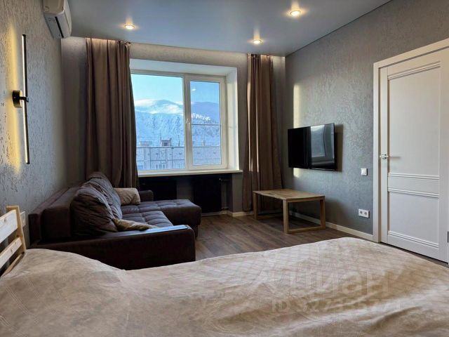 Стильная кухня-гостиная со всей необходимой техникой и раскладным диваном,