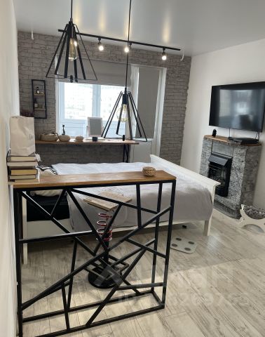 Стильная кухня-гостиная со всей необходимой техникой и раскладным диваном,