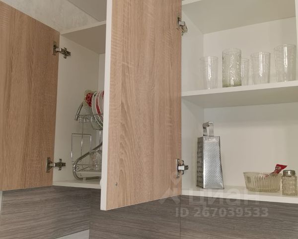Кухня: полы с подогревом, хороший кухонный гарнитур, плита, холодильник, набор посуды, чайник и стол (разбитый предыдущими жильцами, поэтому при желании будет заменён)