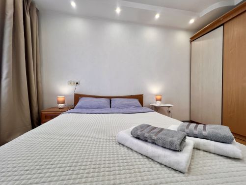 Сдаётся посуточно 2-комнатная квартира в центре города в 100 м от магазина Перекрёсток, 200 м от остановки общественного транспорта и магазина Дикси, 800 м, 5 мин. пешком до трц "Мурманск Молл". В квартире выполнен ремонт, к вашим услугам вежливый персонал. Спальных мест 6, двухспальная кровать и два двухспальных дивана. Наши преимущества: прямая аренда без посредников и дополнительных комиссий, отчетные документы командировочным, различные удобные способы оплаты проживания, включая оплату картами VISA и MasterCard. Перед каждым заездом проводится профессиональная уборка, у нас вы найдете высочайшие стандарты качества. В стоимость проживания входит: безлимитный wi-fi интернет, кабельное телевидение, полные комплекты постельного белья из высококачественного сатина и комплекты полотенец, полностью оборудованная посудой и техникой кухня, чай, сахар, соль, в ванной комнате стиральная машина, фен, гигиенические принадлежности (жидкое мыло для рук, шампунь, гель для тела, стиральный порошок, туалетная бумага, средства для мытья посуды), гладильная доска, утюг и другие приятные мелочи. На время проживания предусмотрен страховой депозит залог 4000 руб. Цена 3000- 10000 руб, зависит от количества человек, выбранных дат, срока проживания и способа оплаты. У нас стандартный заезд, с участием менеджера по заселению с 14:00- 22:00, выезд до- 12:00 бесконтактный, ночной заезд с 22:00- 9:00 с менеджером, оплачивается дополнительно, на месте, по факту заселения и составляет 1000 руб. Также возможен бесплатный бесконтактный заезд в любое время. 2-комнатная квартира на выходные в Мурманской области.