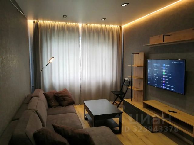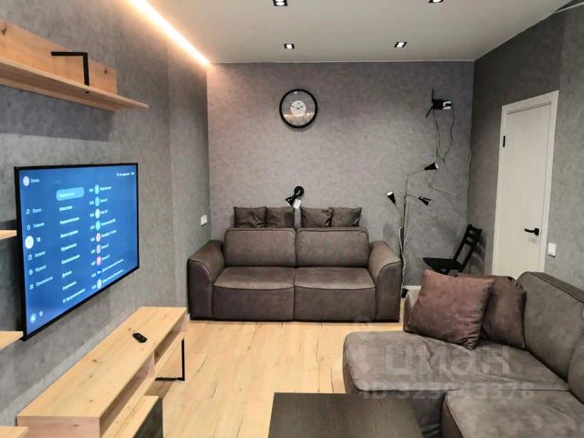 Стильная кухня-гостиная со всей необходимой техникой и раскладным диваном,