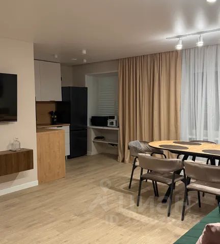 Стильная кухня-гостиная со всей необходимой техникой и раскладным диваном,
