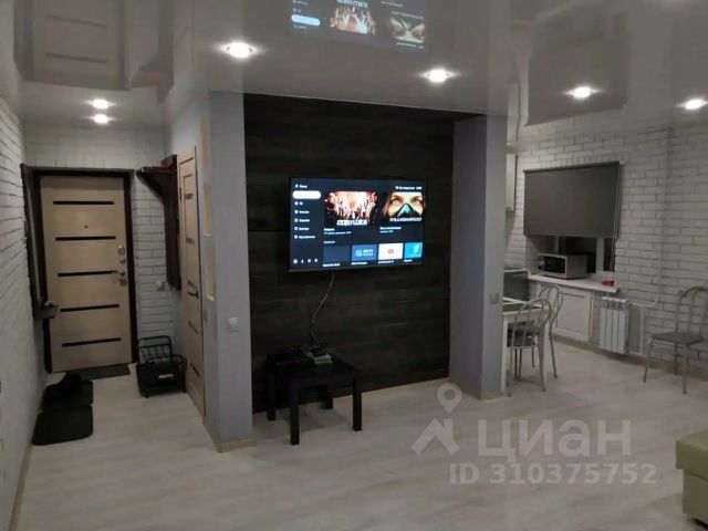 Стильная кухня-гостиная со всей необходимой техникой и раскладным диваном,