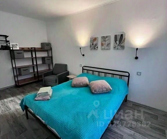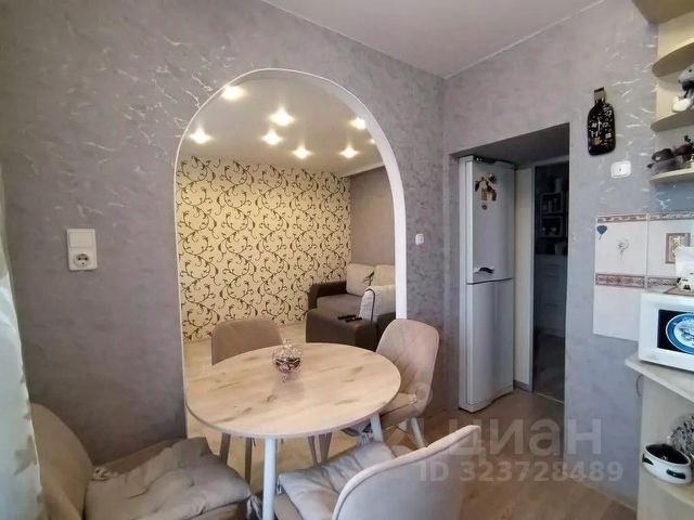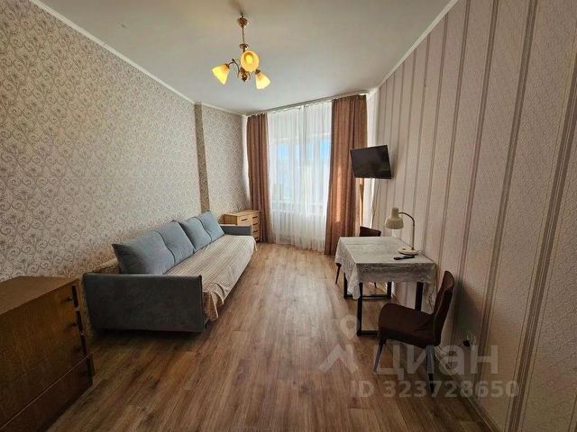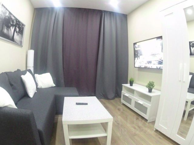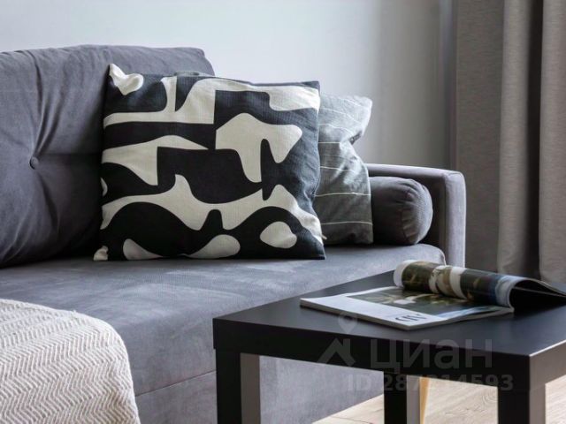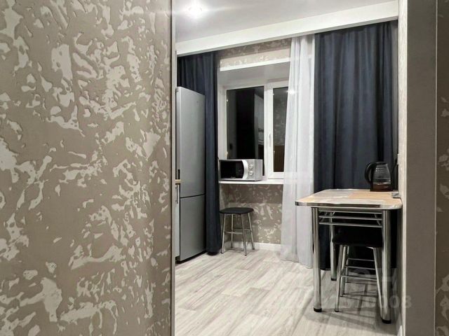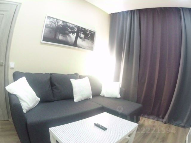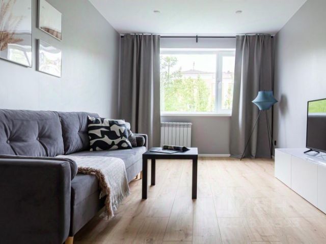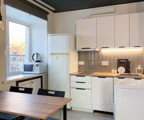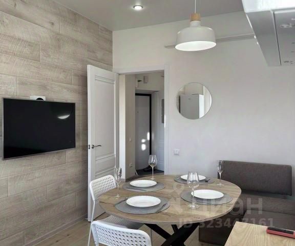 Стильная кухня-гостиная со всей необходимой техникой и раскладным диваном,