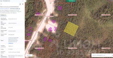 Земельный участок с кадастровым номером 51:19:0010204:152 площадь 1500 по адресу Российская Федерация, Мурманская область, муниципальный район Кандалакшский, городское поселение Кандалакша, село Лувеньга