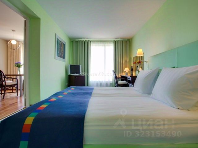В номере: двуспальная кровать с ортопедическим матрасом (160*200), в гостиной - диван-кровать (140*200), платяной шкаф, прикроватные тумбы, комод, журнальный стол, чайник и набор для чая, плоский Smart-TV, тапочки и набор гигиенических принадлежностей. На этаже: общая ванная комната с феном, косметическими принадлежностями, стиральной машиной и сушилкой, утюг и гладильные принадлежности. В зоне ресепшн - вендинговый аппарат с кофе, напитками и снеками.