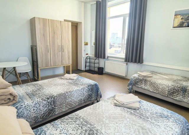 Уютный Двухместный номер, класса Эконом, для размещения двоих гостей. Душевая, туалет, раковина находятся возле номера, с расчетом на 2 номера. Прилагается полотенце 2 шт. и мыльные и туалетные принадлежности. Также в номере имеется все необходимое для комфортного проживания, односпальные кровати, постельное белье, прикроватная тумба, стул, телевизор, вешалка для одежды, зеркало, шкаф для размещения вещей, обогреватель. Окно, шторы блэкаут. На этаже имеется общая кухня, снащенная всем необходимым (Телевизор, зона для приема пищи, кулер, холодильник, варочная панель, мирковолновая печь, вся необходимая посуда), кофе аппарат, охладительные напитки, газировка. Возможность стирки, сушки и глажки белья. Свободная парковка возле отеля. Видео наблюдение. Круглосуточная стойка администрации. Отель расположен в спальном районе, в 2 км от центра города. В доме имеется круглосуточный магазин, в шаговой доступности рестораны, кафе, кинотеатр, сетевые магазины.