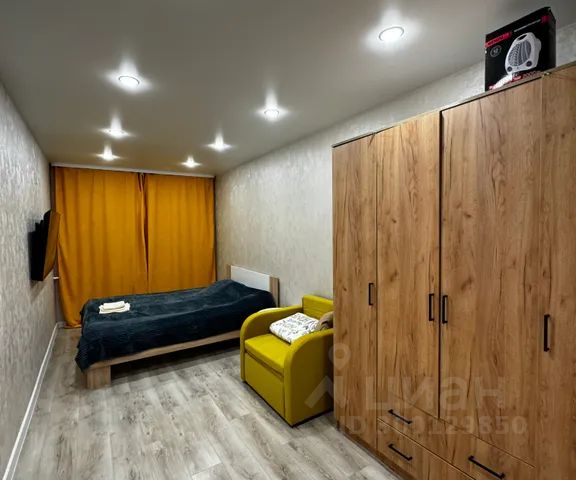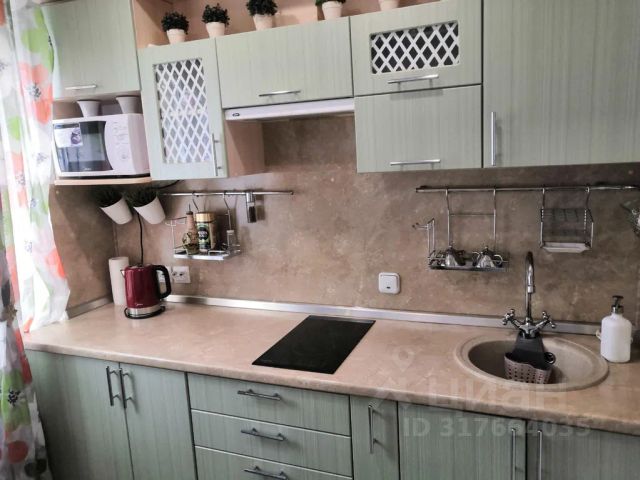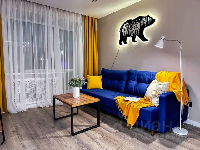 Стильная кухня-гостиная со всей необходимой техникой и раскладным диваном,