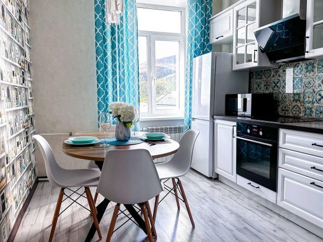 Полностью оборудованная кухня сенсорной бытовой техникой (чайник, тостер, микроволновая печь, духовой шкаф, варочная поверхность, вытяжка, посудомоечная машина, кофемашина + бонус кофе в зернах), посудой и средствами для мытья посуды, проточным фильтром для воды.