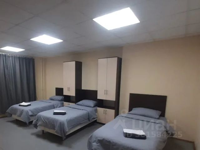 Просторный, уютный номер, класса Эконом, для размещения троих гостей, номер совмещен с балконным блоком. Душевая, туалет, раковина находятся напротив номера, рассчитанные на 2 номера. Прилагаются полотенца 3 шт., мыльные и туалетные принадлежности. Также в номере имеется все необходимое для комфортного проживания, односпальные кровати, постельное белье, прикроватная тумба, телевизор, вешалка для одежды, зеркало, просторный и вместительный шкаф для хранения вещей, обогреватель. Панорамные окна, шторы блэкаут. На этаже имеется общая кухня, снащенная всем необходимым (Телевизор, зона для приема пищи, кулер, холодильник, варочная панель, мирковолновая печь, вся необходимая посуда), кофе аппарат, охладительные напитки, газировка. Возможность стирки, сушки и глажки белья. Свободная парковка возле отеля. Видео наблюдение. Круглосуточная стойка администрации. Отель расположен в спальном районе, в 2 км от центра города. В доме имеется круглосуточный магазин, в шаговой доступности рестораны, кафе, кинотеатр, сетевые магазины.