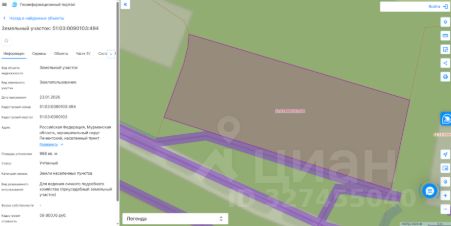 Земельный участок с кадастровым номером 51:03:0090103:494 площадь 998 по адресу Российская Федерация, Мурманская область, муниципальный округ Печенгский, населенный пункт Раякоски