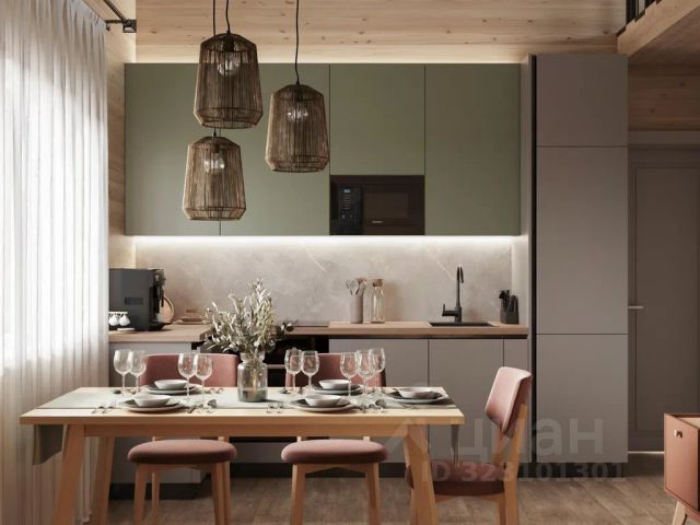 Техника: духовой шкаф, варочная панель на 3 конфорки, холодильник с морозильной камерой, микроволновая печь, посудомоечная машина, чайник.